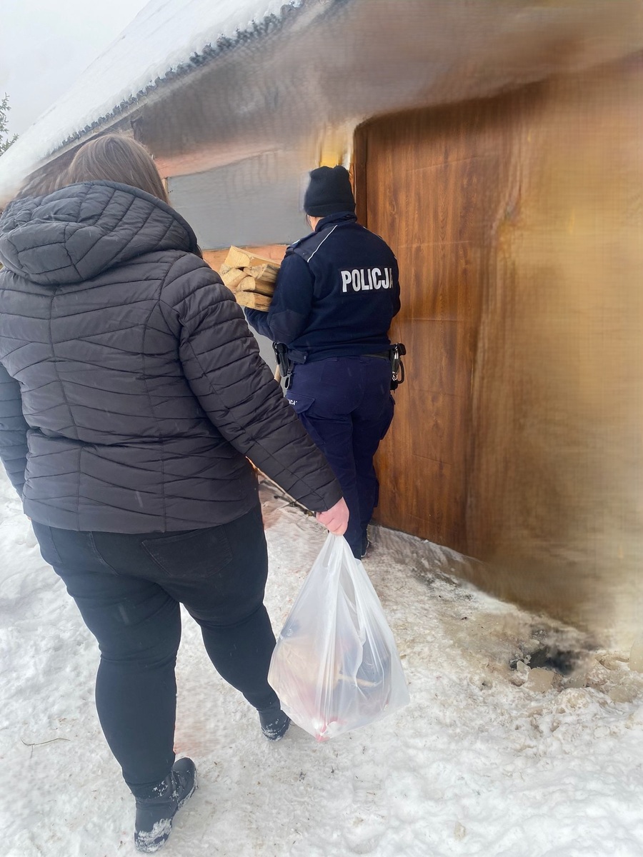 W ramach działań funkcjonariuszka wraz z pracownikiem GOPS odwiedza osoby, dla których niskie temperatury mogą stanowić zagrożenie dla zdrowia i życia. Podczas jednej z wizyt zastano bardzo niską temperaturę w domu, wygaszony piec i brak przygotowanego opału. Mieszkająca tam kobieta poinformowała również, że nie ma żywności. Policjantka i pracownik ośrodka zorganizowali drewno, rozpalili w piecu, pomogli uporządkować mieszkanie oraz zrobili niezbędne zakupy. Kobieta nie kryła wzruszenia i wdzięczności za okazaną pomoc. Okres zimowy to czas szczególnej czujności i wsparcia. Wspólne działania służb i instytucji pomocowych mogą zapobiec wielu tragicznym zdarzeniom. Dlatego apelujemy do mieszkańców o reagowanie w sytuacji zagrożenia. Widząc osobę narażoną na wychłodzenie, leżącą na ławce czy chodniku lub wymagającą pomocy, należy powiadomić służby, dzwoniąc pod numer alarmowy 112 lub informując ośrodek pomocy społecznej. Nie pozostawajmy obojętni na los osób samotnych, starszych i chorych. Czasem jeden telefon może uratować czyjeś życie.